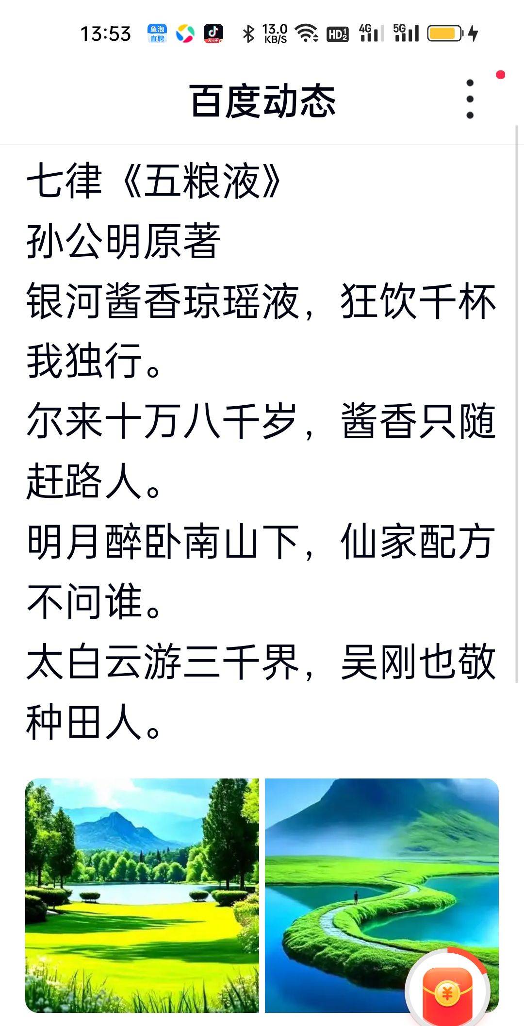 全诗以时空纵横之笔,从银河浩瀚到南山醉卧,从太古沧桑到仙界人间,层层递进地构建出五粮液连接古今、融通凡圣的精神意象。尾句“吴刚也敬种田人”尤为精妙,既打破仙凡壁垒,又昭示劳动本色,使诗境在狂放中归于质朴,余味悠长。