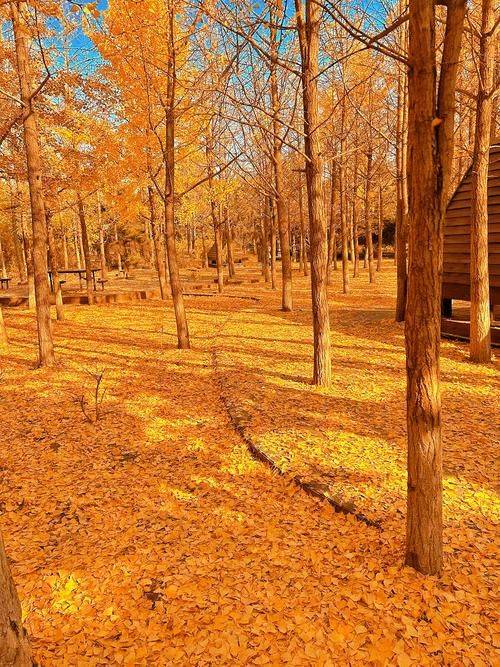 秋风将整片树林染成金黄,飘落的银杏叶如铺开的信笺延续着秋的韵味。叶片似蝶飞舞、如碎玉闪烁,阳光透过枝叶洒下清澈金光。过路游人沉醉拍照,孩童欢快拾叶如收藏童话,枝头还藏着未落的果实,将整个秋天的情思寄托在岁月沧桑中。