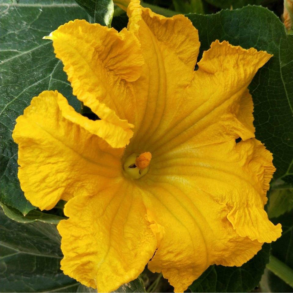 一朵金黄艳丽的南瓜花出现