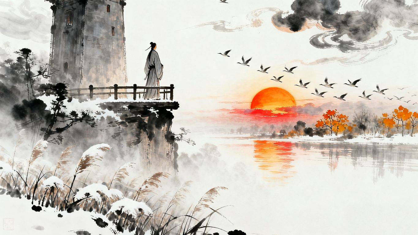 独倚危楼观日堕,芦雪迷津,漫卷秋云破。