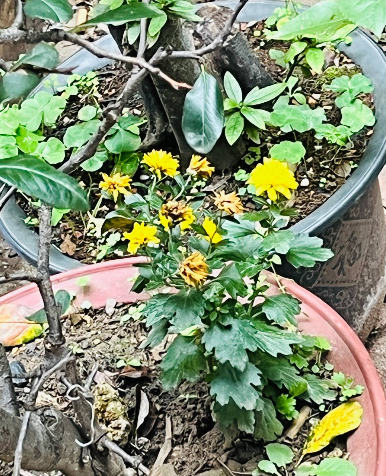 衣单骨冽温阳少,绽放盆菊溢冷香。