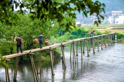 绿装毕挺大哥郎。手牵帮,过桥长。