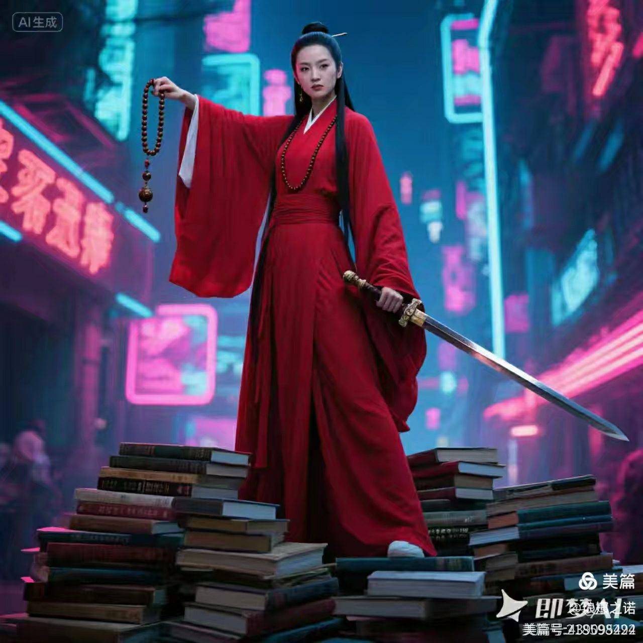 斋号冷逸轩的女人左手捻佛珠右手握刃