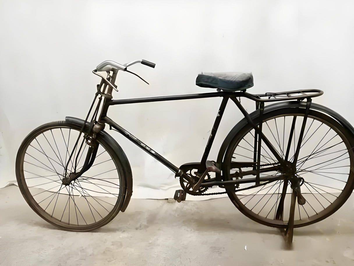 一辆有着横梁的旧自行车