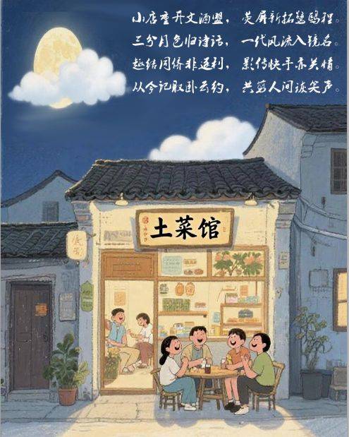 小店重开文酒盟, 荧屏新拓鹭鸥程。