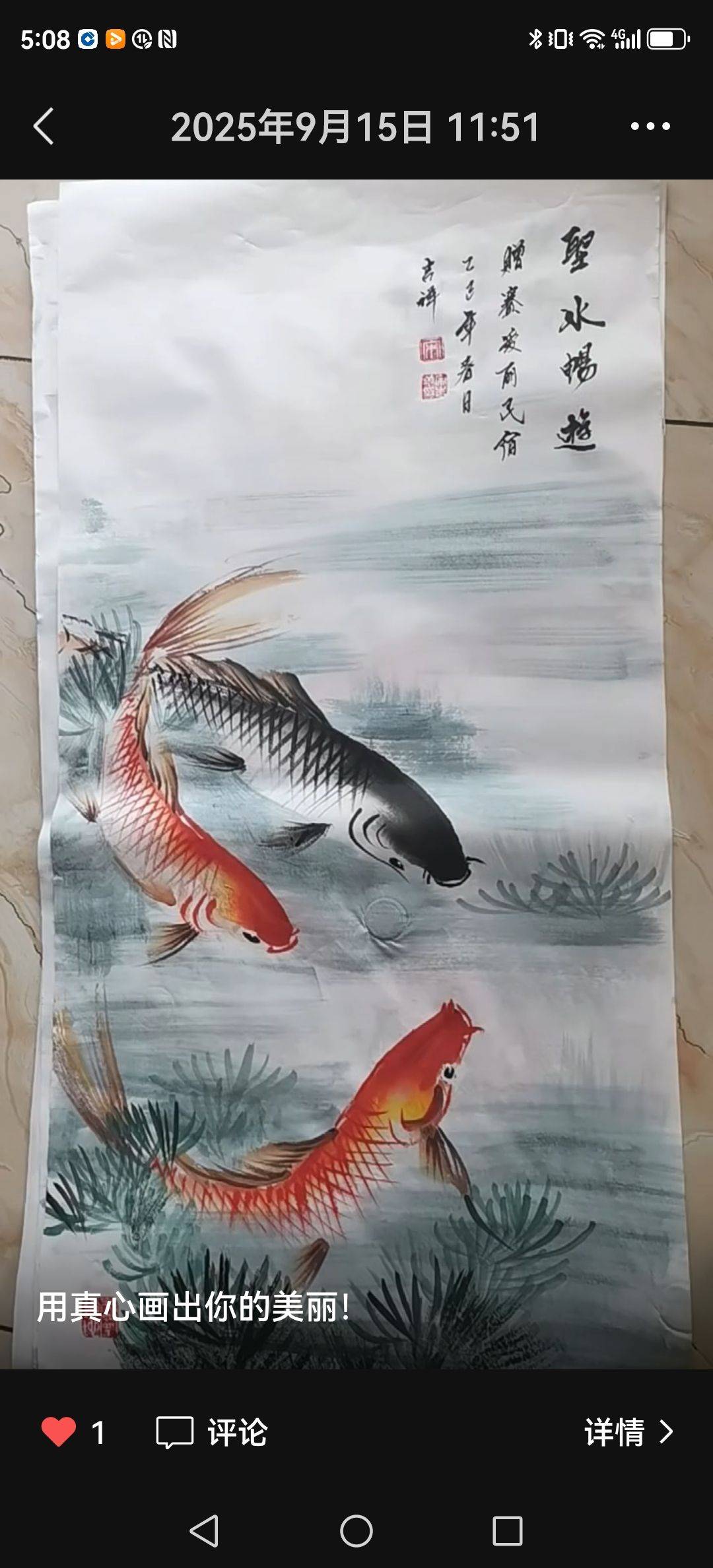 笔下牡丹呈国色,针间锦鲤跃清塘。
