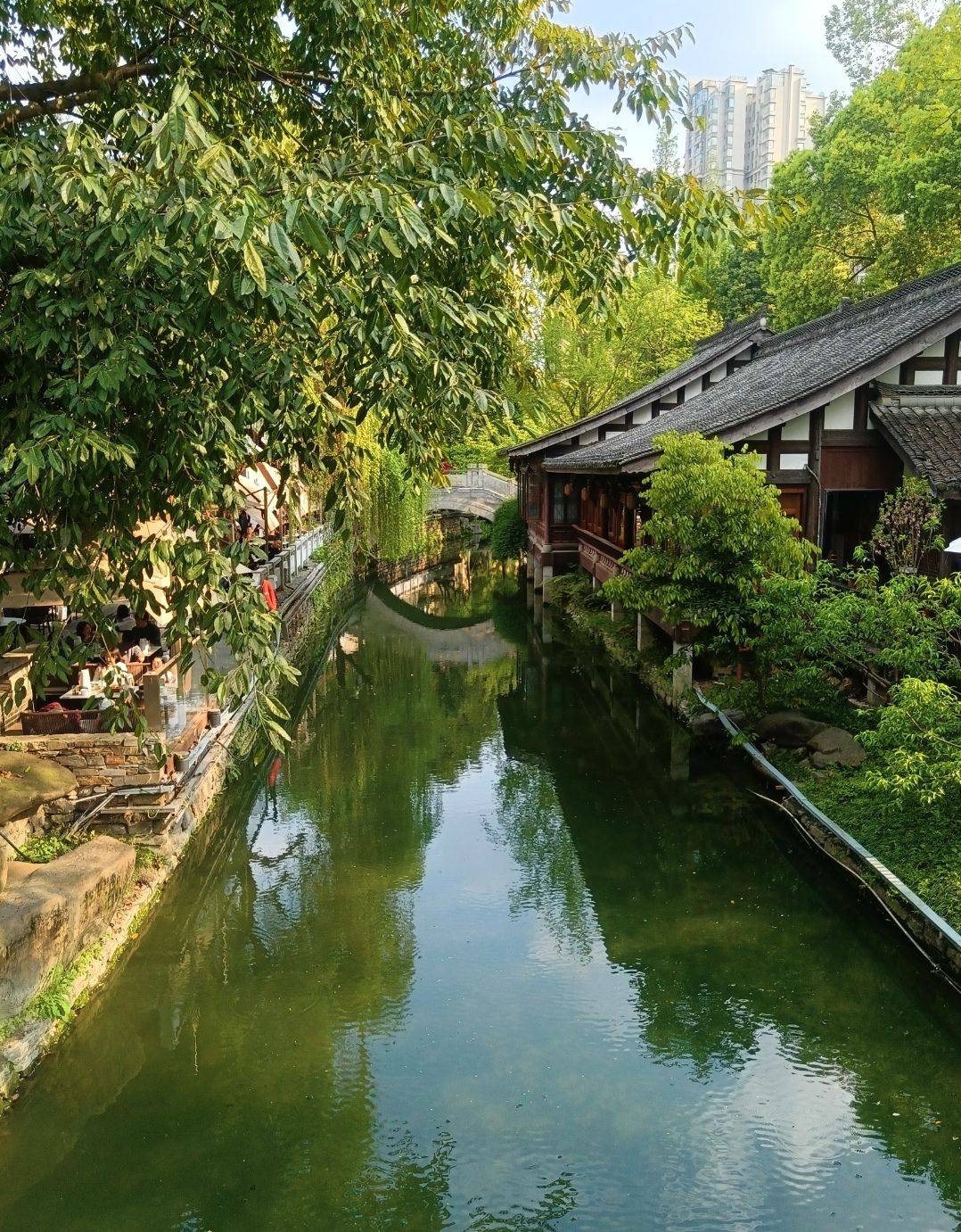 2. 清溪蜿蜒,绿树掩映的禅意水街;