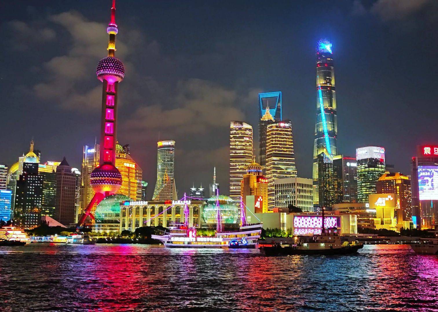 两岸流光幻彩桥,浦江澹澹客如潮。